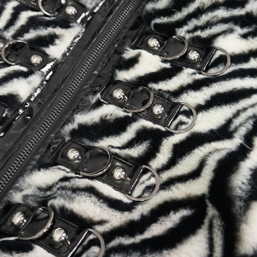 Imported quality faux fur fabric 90% polyester 10% synthetic leather Patent adjustable wrist and top mini belts Great for fall, winter and spring seasons Measurement chart attached