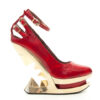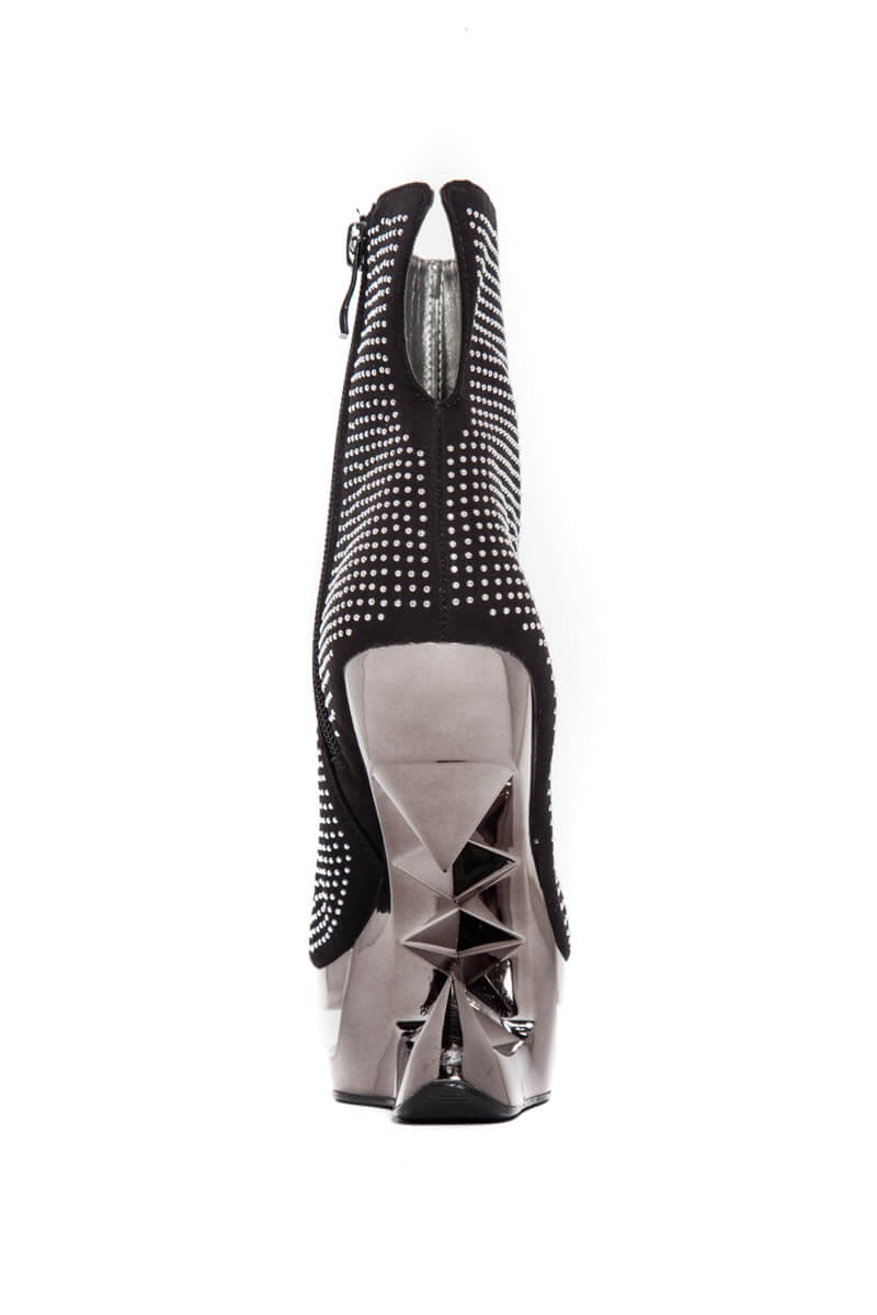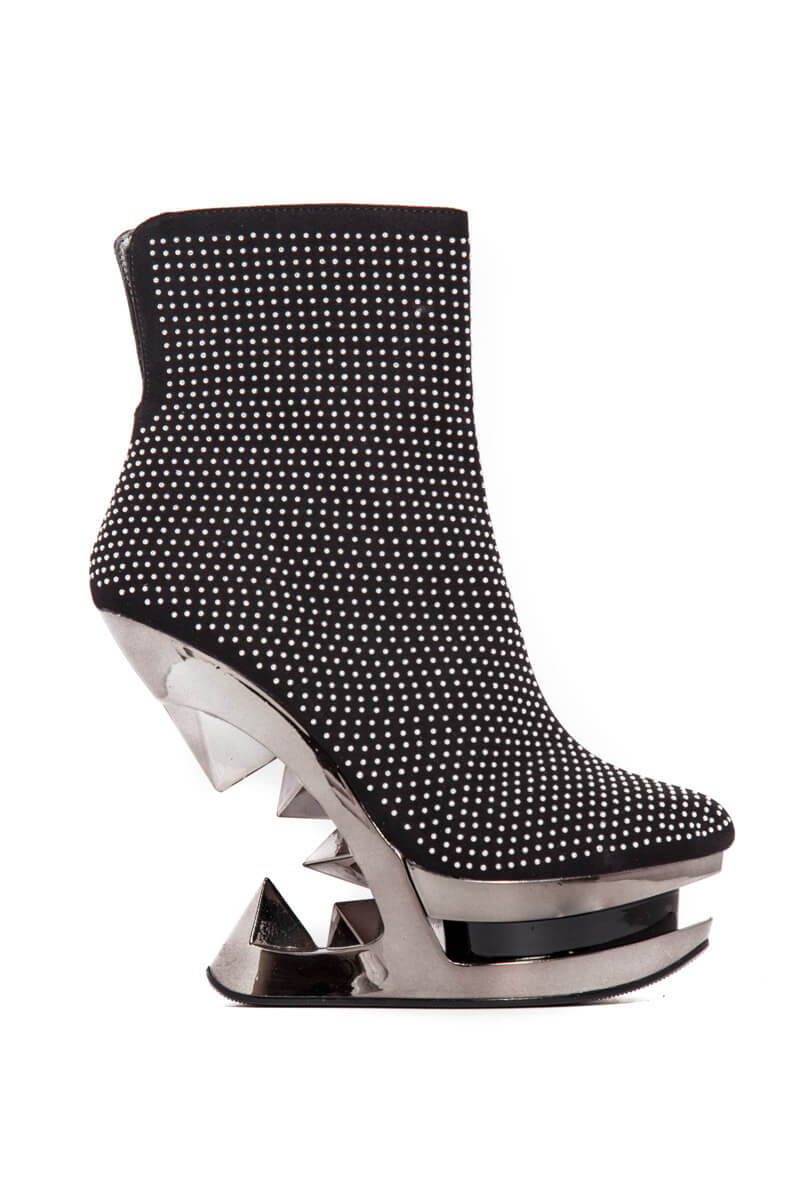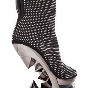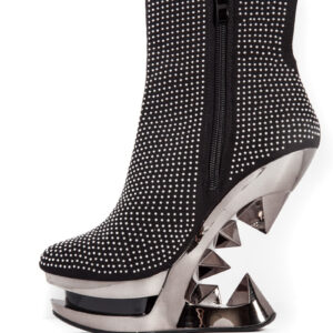 Elegantly studded iceberg wedge heels. 5″ heel height. Inner zipper.