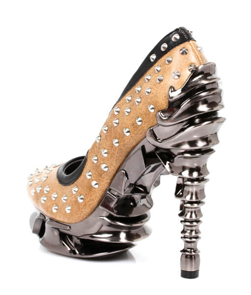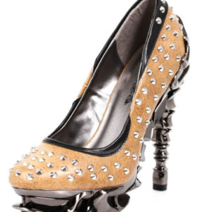 The Layla is Hades take on the classic closed-toe pump. Covered in small metal studs with a black trim, this pump will be sure to edge up any outfit. Easy to walk in with Hades signature 5″ spinal heel and 1.5″ bone platform.