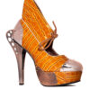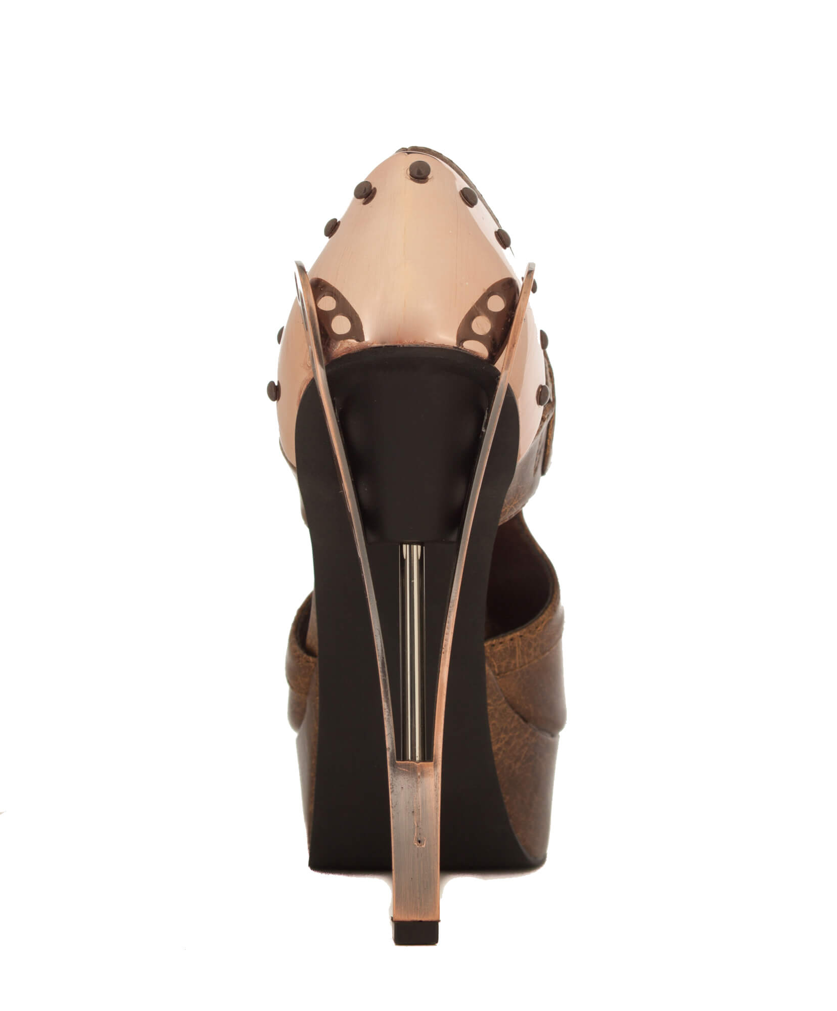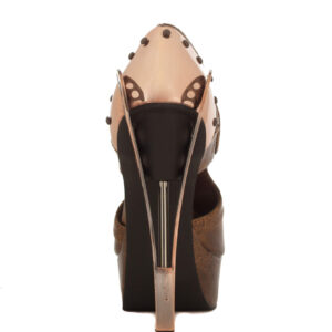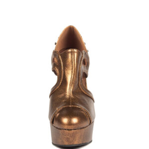 Bronze/Brown sandals mixing Victorian design with Steampunk inspired metal butterfly heel. 5″ height with 1.5″ platform. Elastic on inner side for comfort and easy fit.